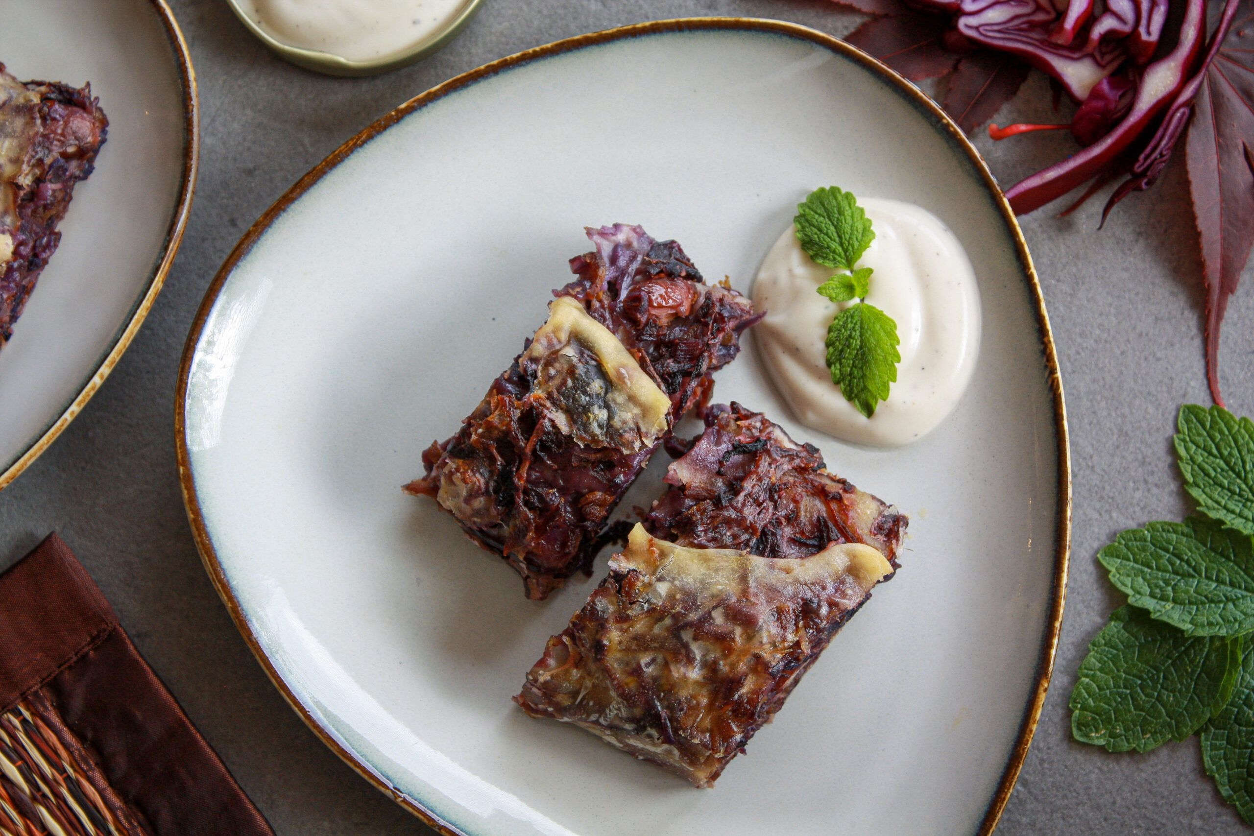 Am liebsten genießen wir den herzhaften Strudel mit unserer legendären Joghurtsoße – siehe Rezept Röstis.