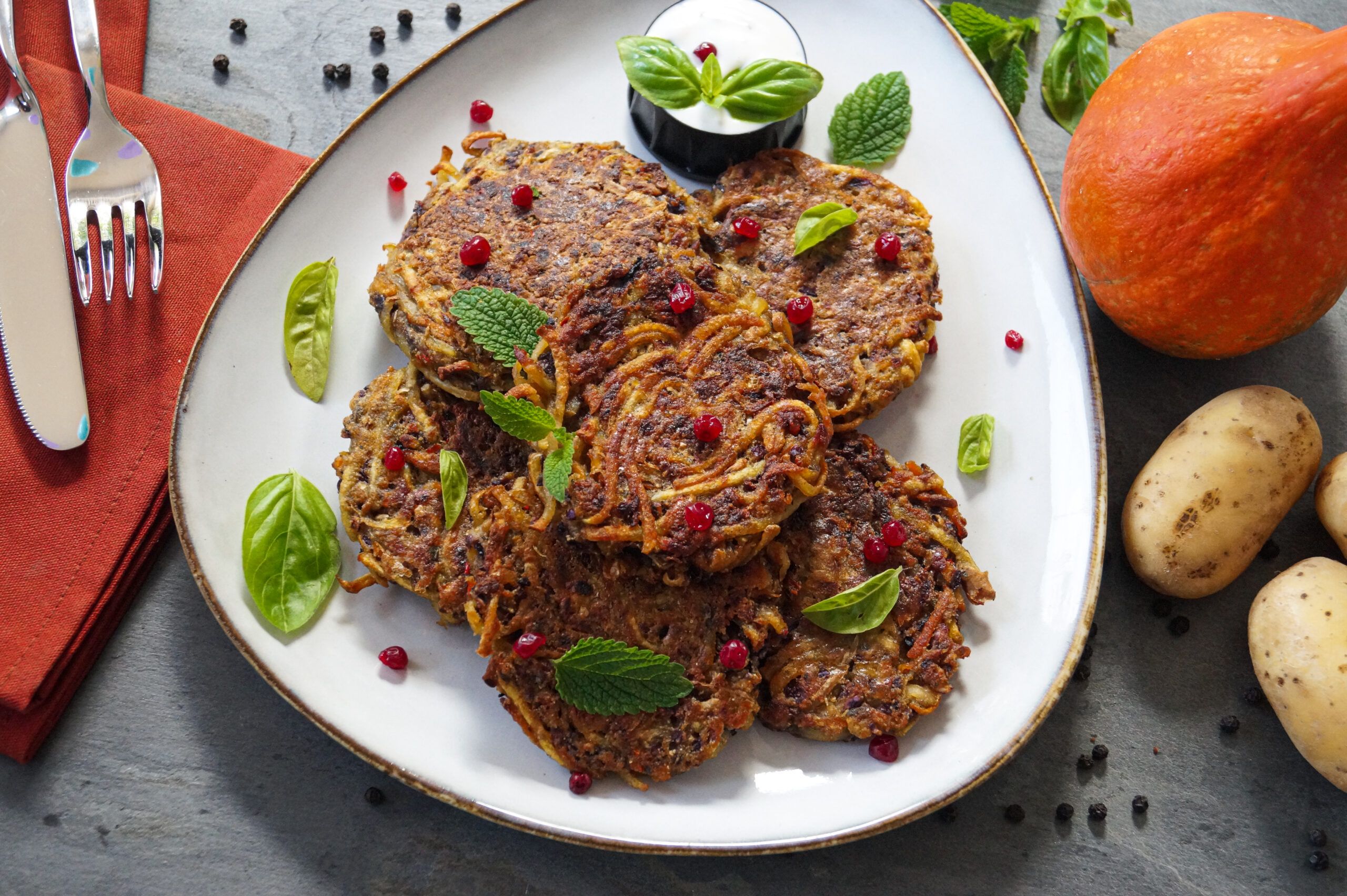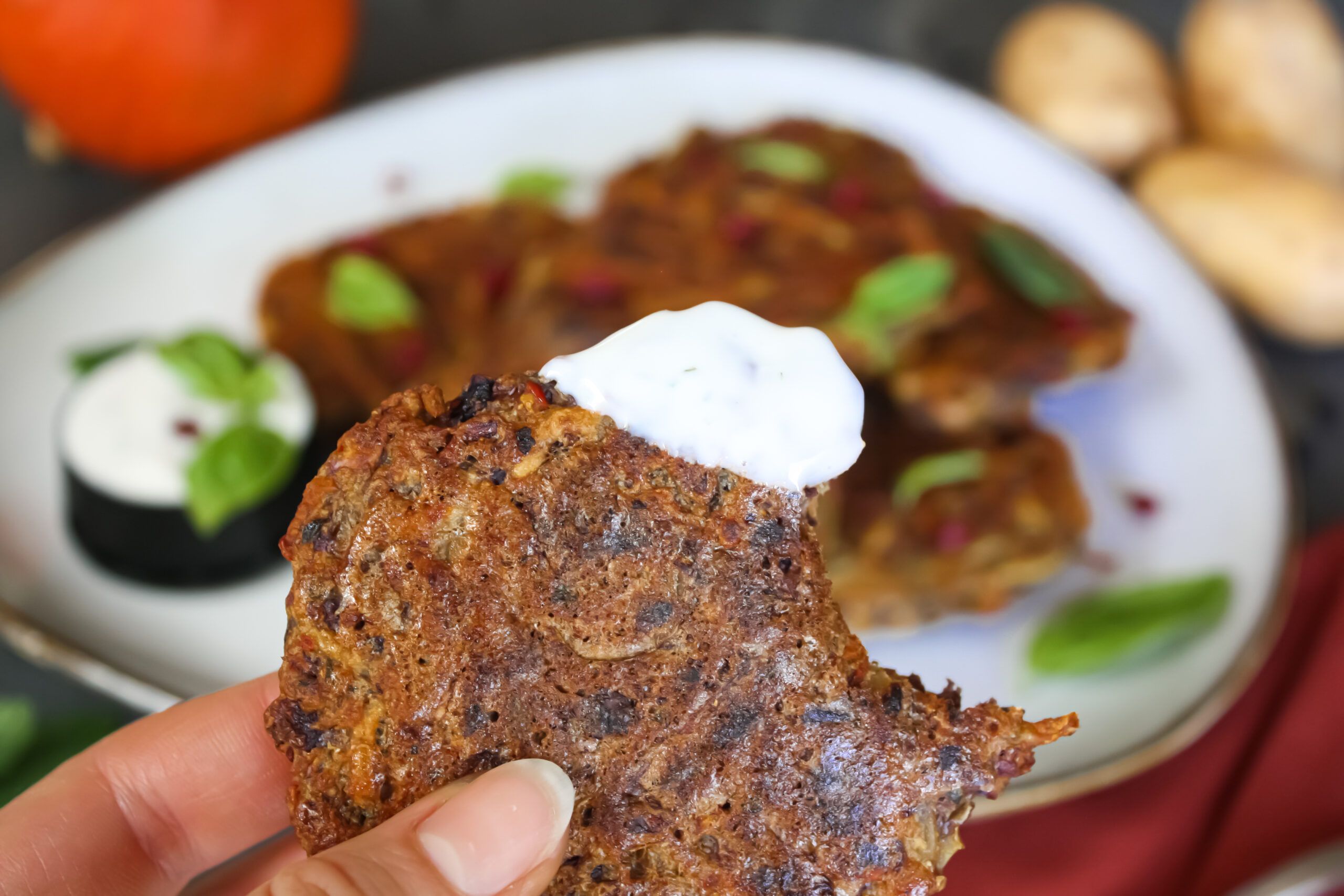 Wir lieben ja Gerichte, die vollgepackt mit Gemüse sind. Bei unseren veganen Röstis haben wir als Basis Kartoffel, Kürbis und Rotkraut verwendet. Bei der Wahl des Gemüses könnt ihr euch natürlich austoben. Da wir Kartoffel lieben, ist uns die Entscheidung sehr leicht gefallen.